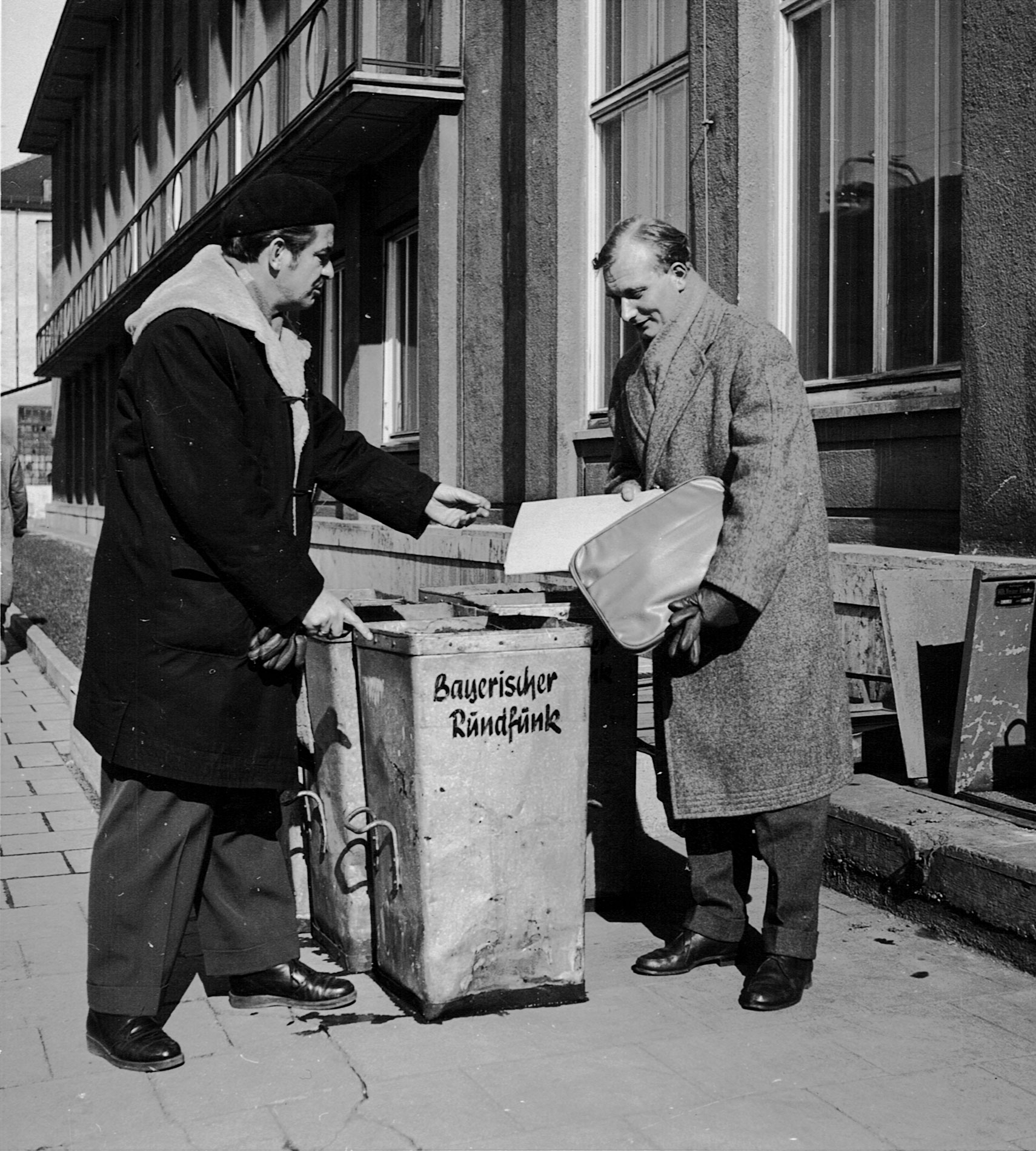 James Krüss vor einer Mülltonne des Bayerischen Rundfunk